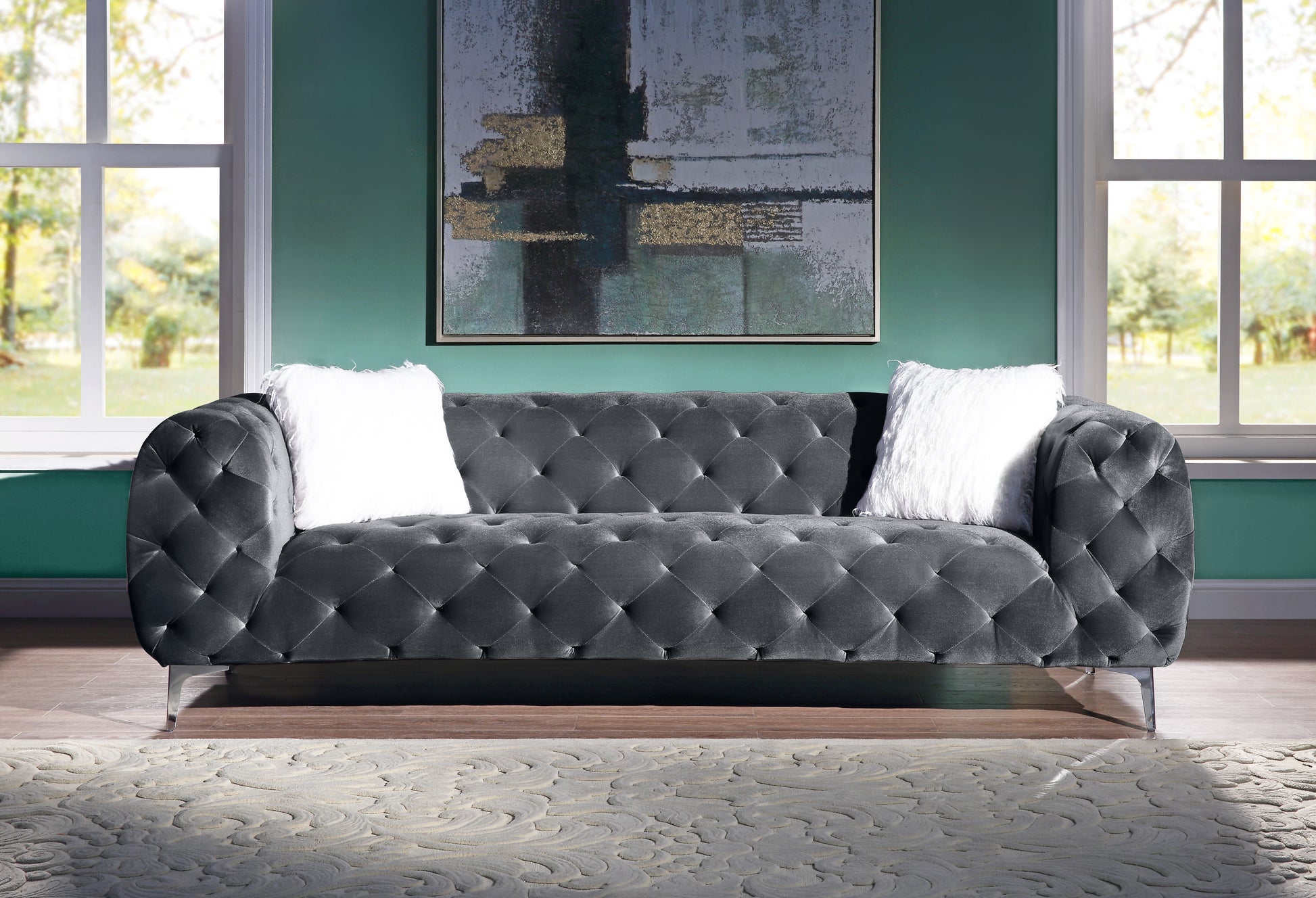 Luxurious Velvet Upholstery: Soft 100% polyester velvet available in black, blue, or grey.