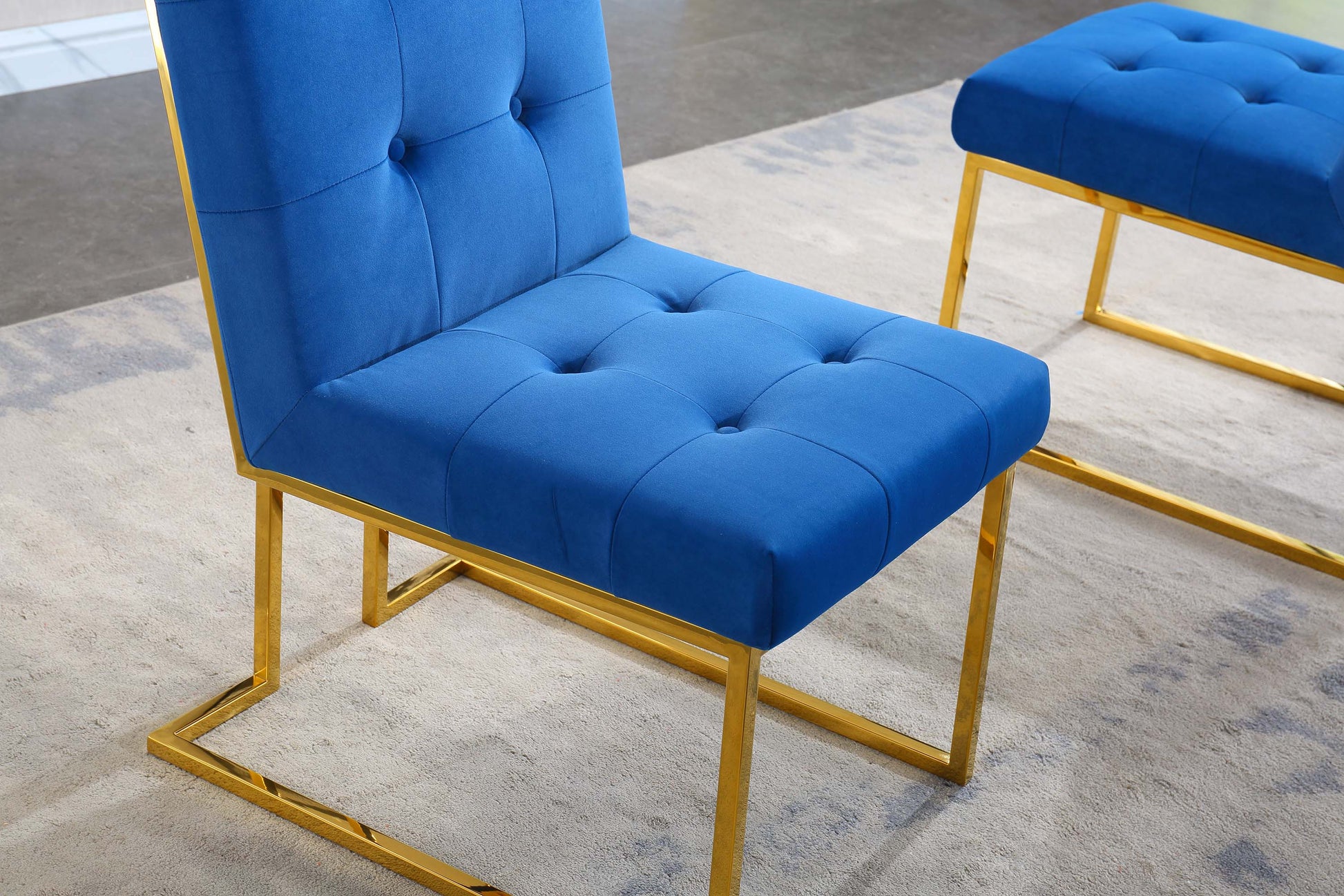 Elevate your dining space with our Elegant Velvet Dining Chair Set. Each set includes two luxurious chairs, meticulously crafted for both style and comfort. The plush velvet fabric is available in White, Beige, Blue, Black, and Grey, perfectly complementing any decor. The stainless steel frame with a gold mirrored finish adds a touch of sophistication and modernity to your dining area. With an overall size of 20.5"L x 27.8"D x 37.4"H, these chairs are designed to offer both elegance and ample seating space.