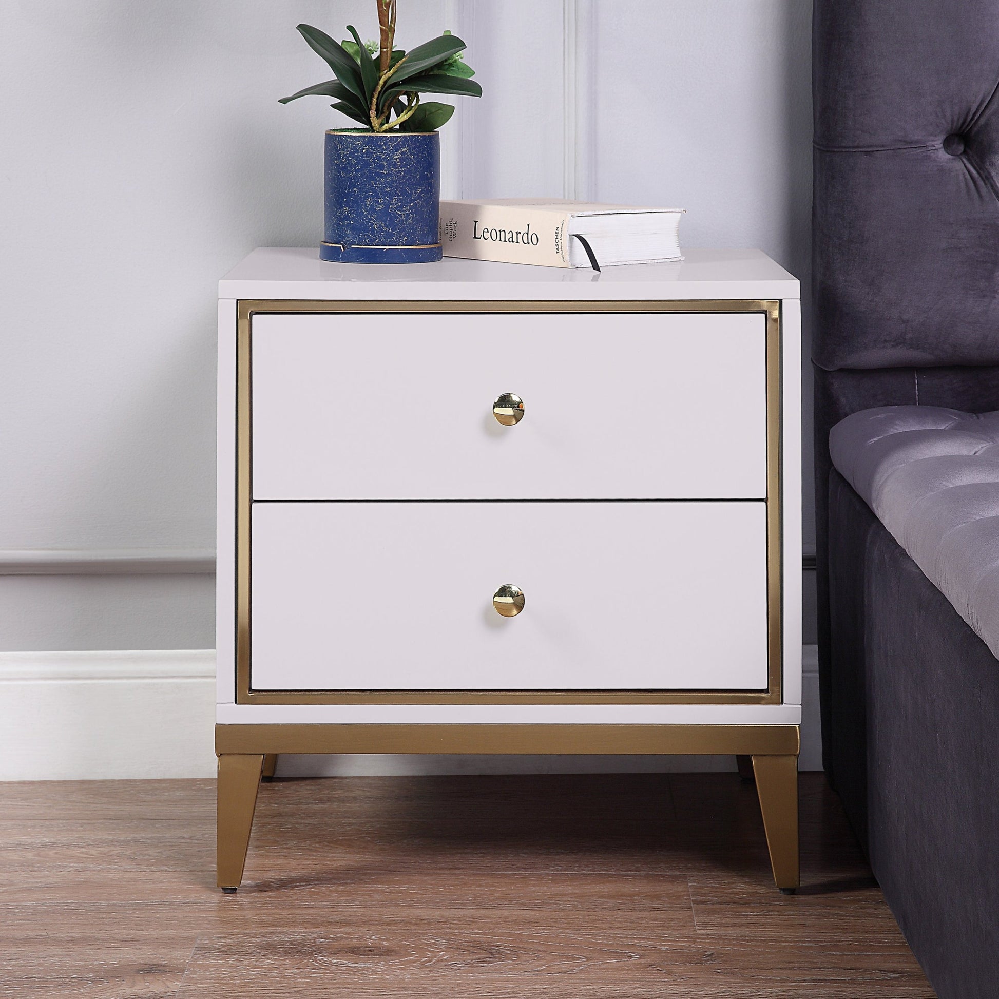 NS003IV Elegant Ivory Lacquer Night Stand